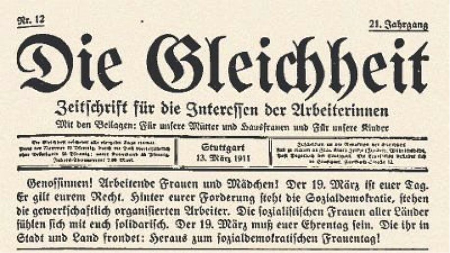 Tại Đức lúc bấy giờ, hai triệu rưỡi tờ rơi kêu gọi tham gia Ngày Phụ nữ đã được in và phân phát khắp đất nước. Die Gleichheit đưa ra lời kêu gọi của riêng mình: