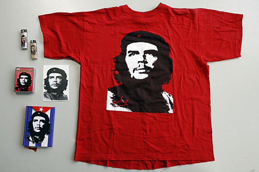 Hình ảnh nhà cách mạng Marxist người Argentina được in phổ biến trên các loại quần áo “ngầu/nổi loạn”. [Nguồn: The Christian Science Monitor]