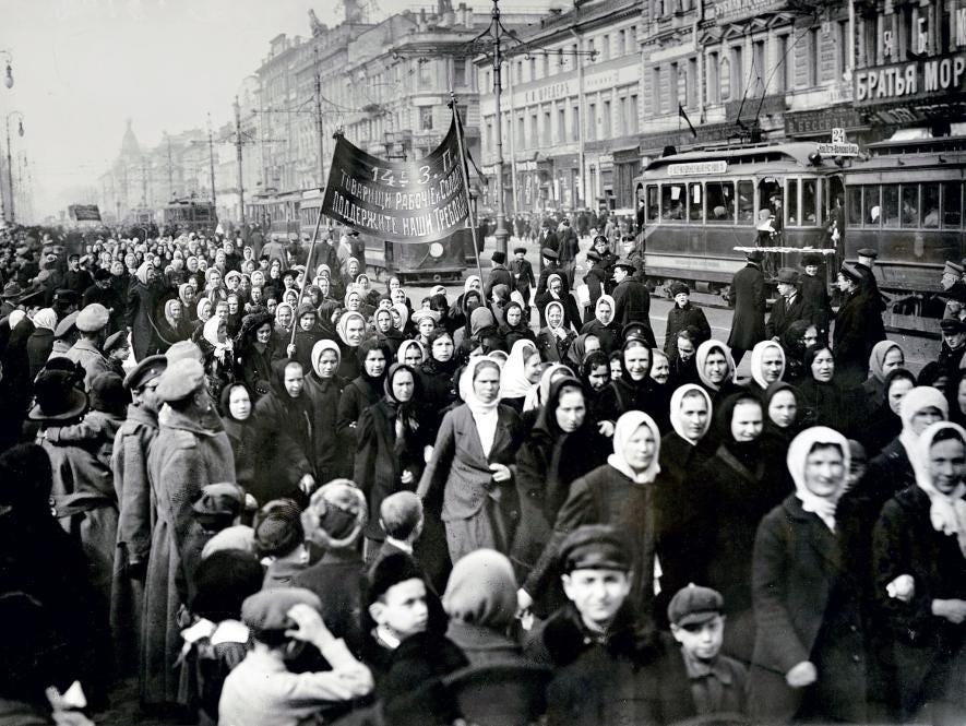 Thêm vào đó, thời điểm được coi là Ngày Quốc tế Phụ nữ Lao động ngày 8 tháng 3 chính là sự kiện diễn ra vào ngày 8 tháng 3 năm 1917 tại Saint Petersburg, Nga. Ngày hôm đó, các nữ công nhân dệt may đã xuống đường biểu tình phản đối chế độ đế quốc Nga, phản đối chiến tranh, khủng hoảng lương thực, điều kiện làm việc khắc nghiệt và bóc lột. Cuộc biểu tình này sau đó lan rộng ra tất cả các trung tâm công nghiệp lớn và mở đường cho Cách mạng Tháng Hai, sau đó là Cách mạng Tháng Mười vĩ đại. Một trong những khẩu hiệu của cuộc biểu tình này, ‘Bánh mì và Hòa bình’, cũng trở thành khẩu hiệu của Cách mạng Tháng Mười.