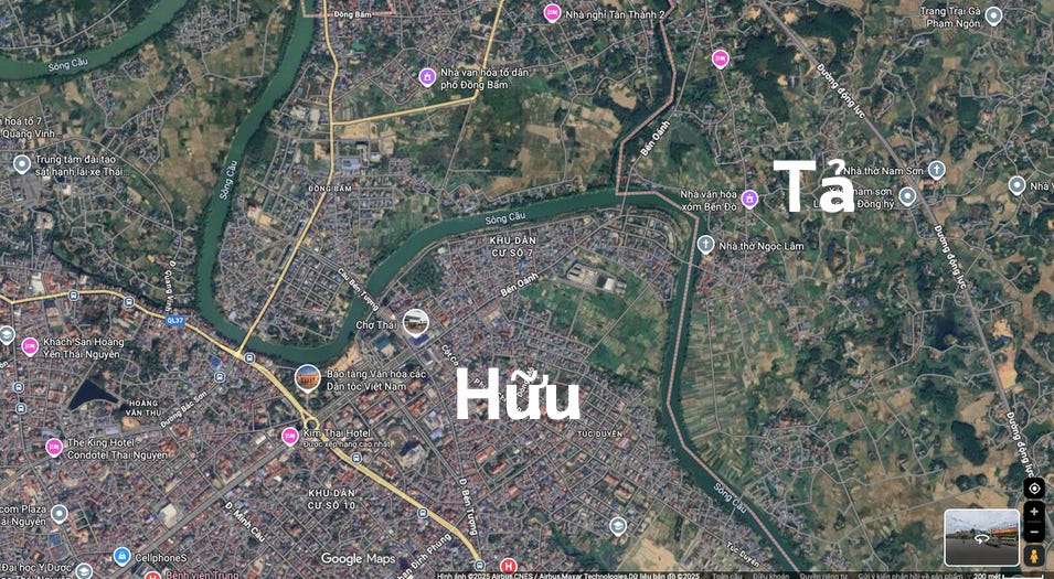 Sông Cầu chảy qua Thái Nguyên chia làm hai bờ, bờ tả và bờ hữu (trái và phải). Bên tả trước đây là vùng canh tác gồm đồng ruộng và hoa, hạn chế quy hoạch đô thị. Do vậy, bờ tả không có đê, để nước tràn vào tự nhiên bồi đắp phù sa cho nông nghiệp và phân lũ cho bên hữu – vùng đô thị đông đúc.