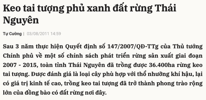 Đi dọc các sườn đồi núi phía Bắc Thái Nguyên, bạn sẽ thấy phần lớn đất đai được phủ xanh bởi rừng keo hoặc quế. Chúng là loại trồng ngắn hạn để khai thác gỗ – không có tác dụng nuôi dưỡng hệ sinh thái hay tạo thành rừng nhiệt đới giữ nước.